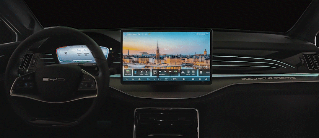 To create an enjoyable driving experience, 完美真人 TANG is equipped with a 15.6 inch rotatable multimedia screen, 31 color ambient lights throughout the interior, and the best Hi-Fi speakers.